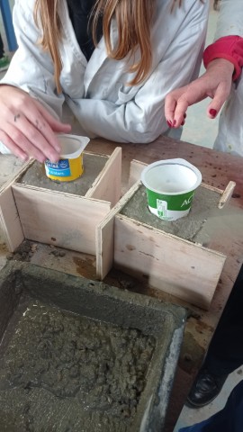 - verser le ciment dans le coffrage jusqu’à ras bord
