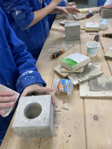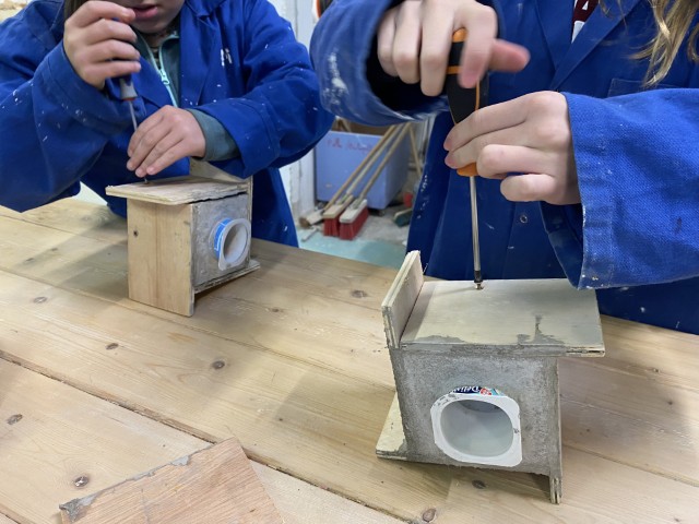 Ce projet nous a appris à lire un plan, à convertir des unités de mesure, à manier des outils, à connaître les différents types de vis, à faire du béton… Et on a aussi découvert l’atelier Habitat.